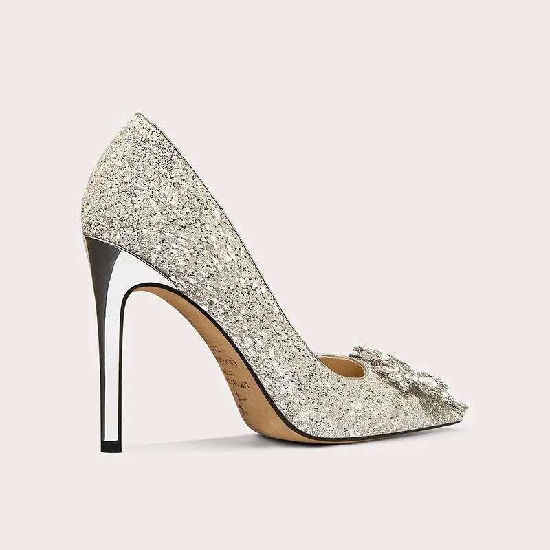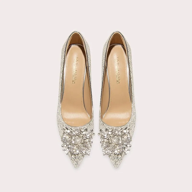 Luxury Gold Dress Shoes for Women Shiny High Heels Thin Height Increasing Button Closure for Bridal Bridesmaid Sandals Summer